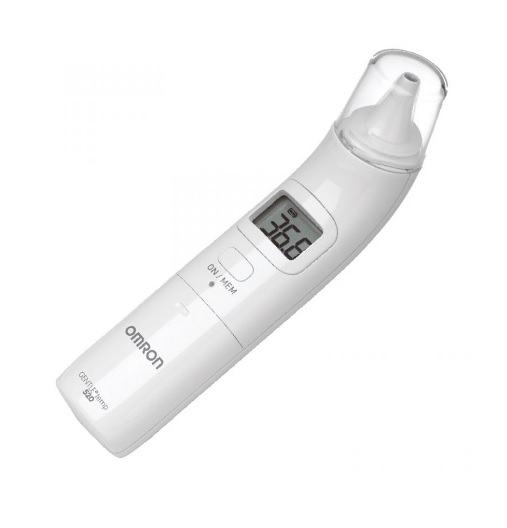 تب سنج دیجیتالی امرون Gentle Temp 520 تولید شرکت امرون OMRON و از نوع غیر تماسی می باشد. این محصول دمای بدن را از طریق گوش با با تاباندن اشعهی فروسرخ داخل آن اندازه گیری می کند.