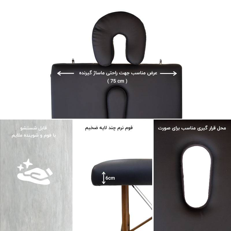 ارائه دهد. ارتفاع مناسب و پایداری تخت، کار ماساژور و فیزیوتراپیست را ساده‌تر می‌کند.