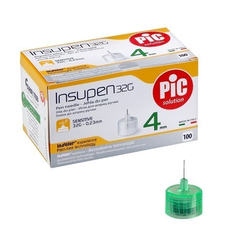 سر سوزن قلم انسولین شماره 4 پیک Pic Insupen Pen Needle 32G 4mm یکی از نازک ترین سرسوزن های قلم انسولین است که با قطر تنها 0.23 میلی متر و طول 4 میلی متر است. این اندازه کمترین حس ایجاد درد را القا خواهد کرد. در طراحی سرسوزن قلم انسولین پیک با این ضخامت بسیار کم از تکنولوژی تراش سه گانه سوزن استفاده شده است تا در زمان استفاده دردی احساس نشود. طول این سر سوزن نیز 4 میلی متر است. با سر سوزن قلم انسولین پیک می توانید به راحتی و بدون درد تزریق انسولین را انجام دهید.