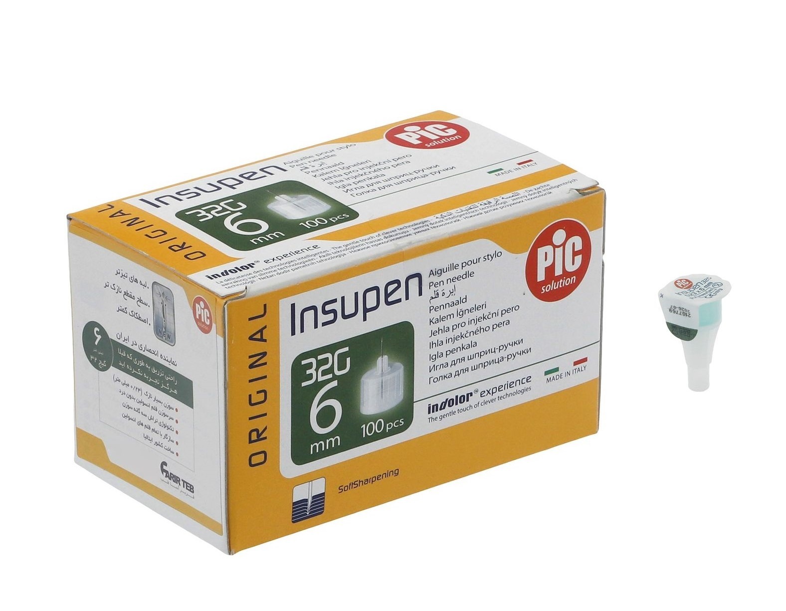 سرسوزن انسولین پیک 6 PiC ساخت کشور ایتالیا، محصولی یکبار مصرف و استریل است که به صورت اختصاصی جهت تزریق انسولین کاربرد دارد. این سوزن انسولین در طول و قطر متفاوت ارائه میشود و طبق اصول Indolor Experience طراحی شده تا تجربه تزریق بدون درد را برای مخاطب فراهم کند.